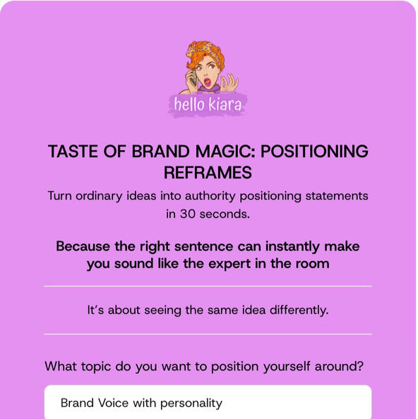 Turn ordinary ideas into authority positioning statements in 30 seconds.