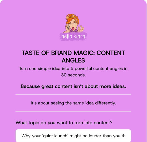 Turn one simple idea into 5 powerful content angles in 30 seconds.